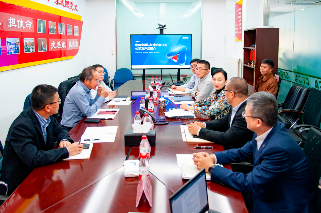 近日,北京美高梅官网正网股份有限公司(简称:美高梅官网正网)董事长詹榜华、金融事业部总监赵硕、市场运作部总监邵长远一行,应邀到访中金金融认证中心有限公司(简称:CFCA),并与CFCA董事长兼总经理胡莹就深化密码产业生态合作,共同推动密码产业健康有序发展进行座谈交流。