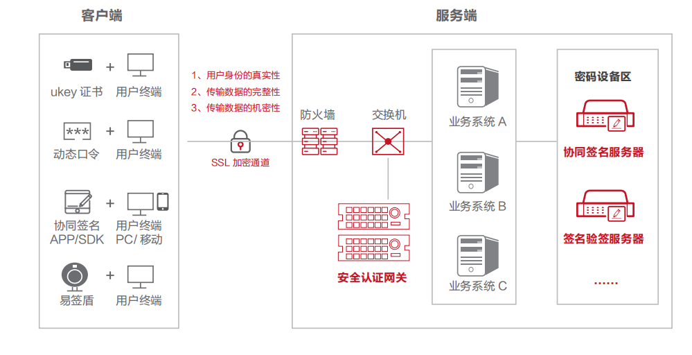 面向密评、数据安全、等保等认证需求,实现终端安全认证,防止非授权登录、链路劫持和服务 API 探测等问题。