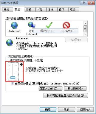 2) 如果更换为360浏览器不可以,或您不方便更换,需要对IE浏览器进行调试(具体调试内容为:调整安全级别为“中”及添加安全可信站点)。
